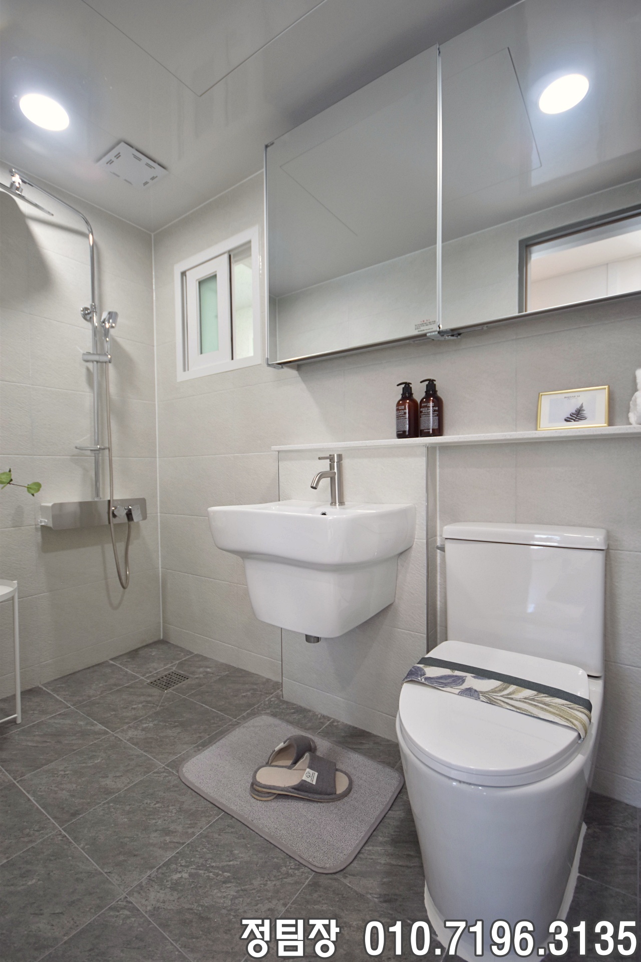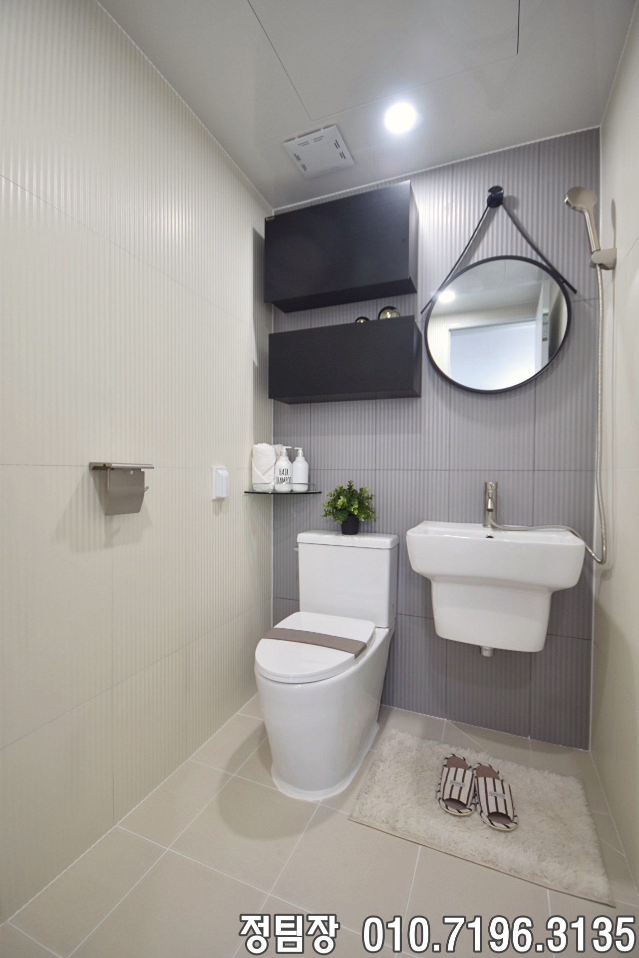 서암리신축빌라 욕실은 공동욕실과 안방욕실, 총 2곳으로 구성되어 가족이 함께 사용하기에도 불편함이 적어 보였습니다. 공동욕실은 넉넉한 크기로 설계되어 사용이 편리했고, 해바라기 샤워기가 설치되어 실용성을 높여주었습니다. 김포빌라분양 수납은 슬라이딩 미러장을 중심으로 구성되어 있었으며, 선반도 함께 마련되어 욕실 용품을 정리하기에 수월해 보였습니다.