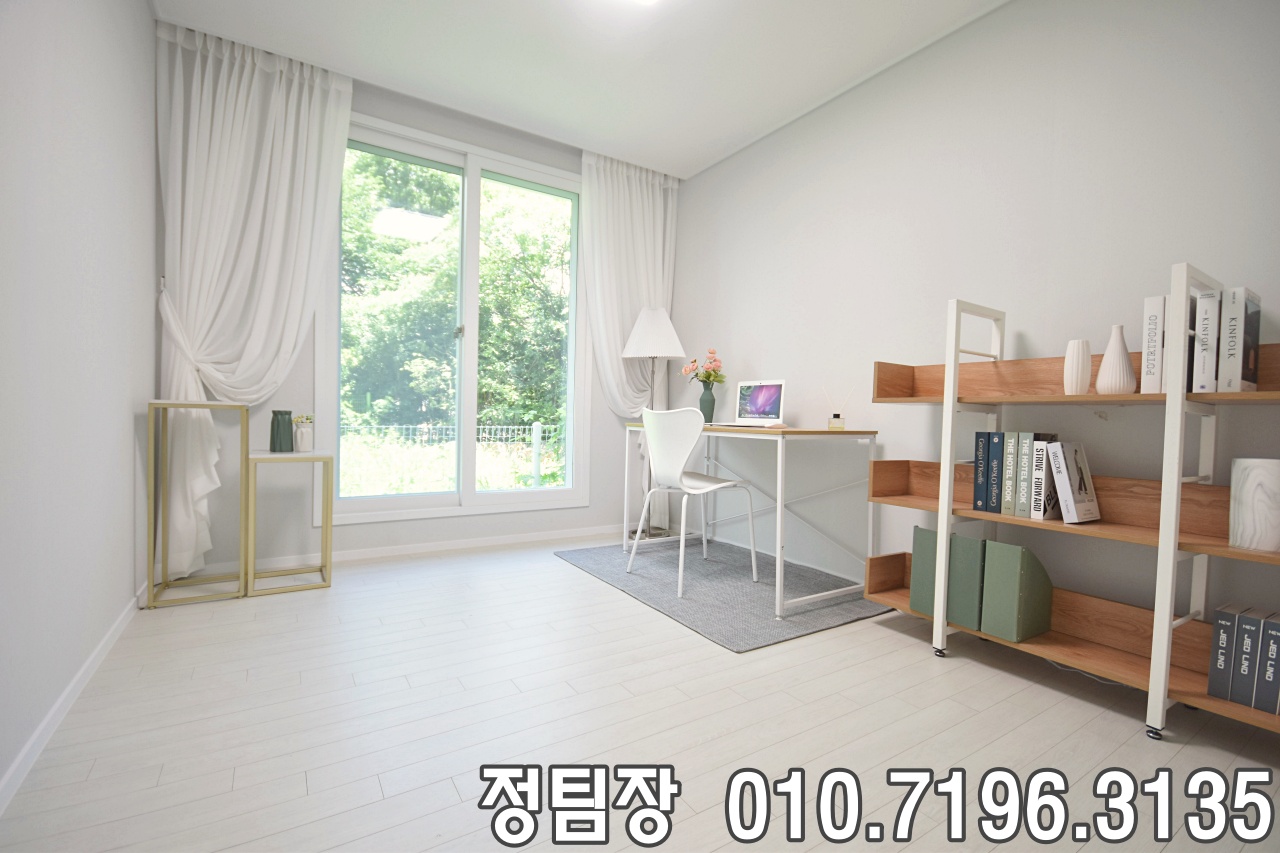 김포신축빌라분양 각 방의 창문은 비교적 큰 사이즈로 시공되어 채광이 좋았고, 시야가 막히지 않아 쾌적한 환경을 유지할 수 있겠더군요. 바닥은 거실과 동일한 마루로 시공되어 공간 간 통일감을 주었으며, 벽지는 무난한 화이트톤으로 마감되어 어떤 가구를 두어도 잘 어울릴 구성으로 보였습니다.