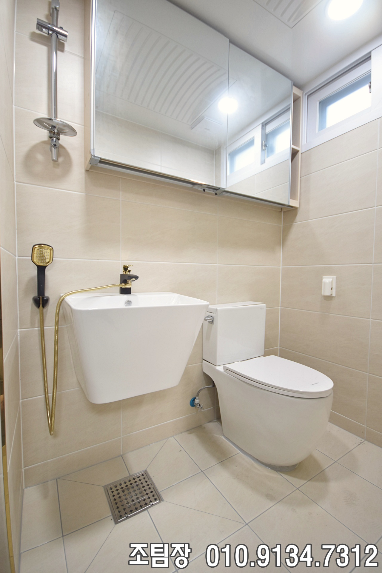 소사본동신축빌라 욕실은 총 2개로 구성되어 있으며, 공동욕실은 넓은 공간에 샤워 파티션이 설치되어 사용이 편리합니다. 슬라이딩 미러장, 해바라기 샤워기, 모서리 받침대, 선반, 벽부착 세면대 등 실생활에서 활용도가 높은 구성 요소들이 고르게 갖춰져 있어 실용성이 돋보였습니다.