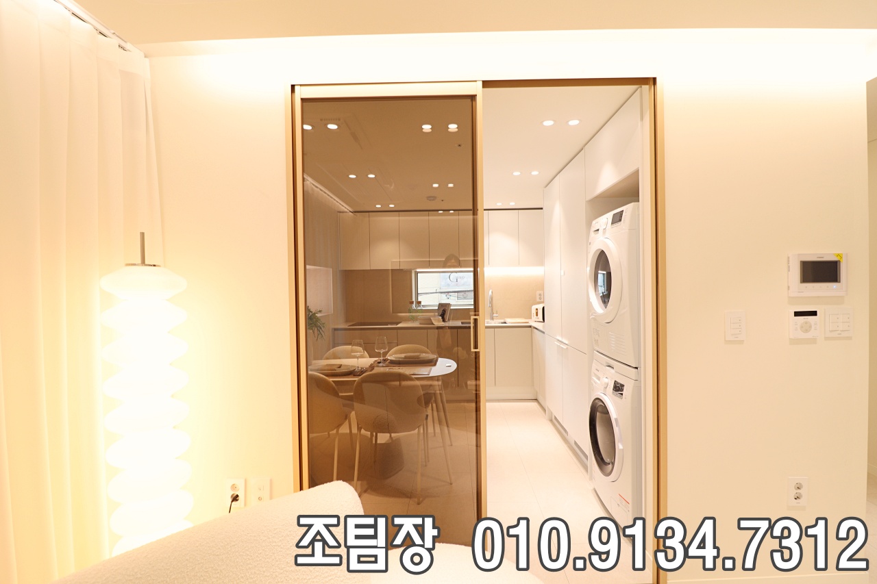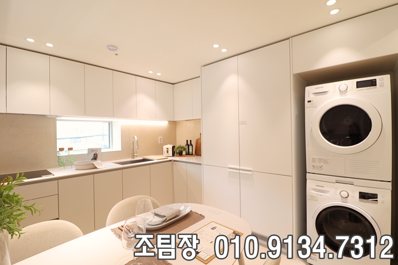 중곡동신축빌라 주방은 주부님들의 로망을 실현한 듯, 세련된 디자인과 압도적인 옵션 구성이 단연 돋보였습니다. 거실과 분리되어 있어 깔끔한 관리가 가능한 것은 물론, 고급스러운 상하부장은 수납공간이 무척 여유로워 주방 살림이 많은 가정에서도 정리가 수월해 보였답니다. 특히 양문형 냉장고와 세탁기, 건조기가 기본 옵션으로 빌트인되어 있어 공간 활용도가 극대화되었고, 양방향으로 나 있는 창문 덕분에 채광과 맞통풍 환기 성능이 탁월했습니다. 광진구빌라매매 넉넉한 식탁 공간과 효율적인 조리 동선, 그리고 요리 시 발생하는 냄새를 빠르게 배출해 주는 고성능 환기 시설까지 갖춰져 있어, 시각적인 아름다움과 실용적인 편의성을 모두 잡은 완벽한 주방 공간으로 꾸며져 있었던 점이 인상적이었습니다.